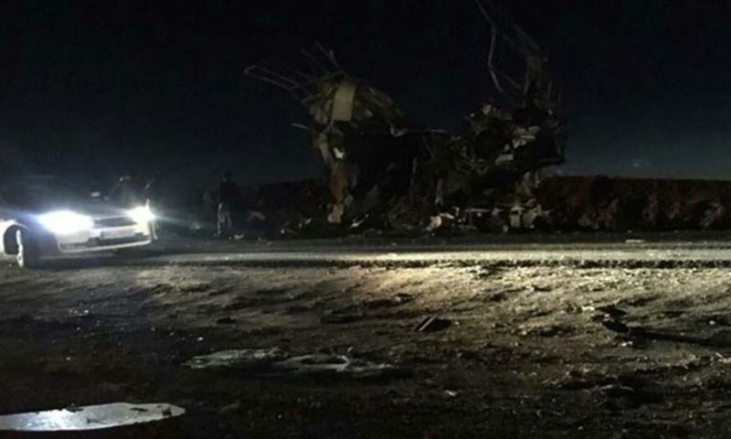 ইরানের সামরিক বাহিনীর এলিট ফোর্স- রেভুলশনারি গার্ডের সদস্যদের বহনকারী বাসে আত্মঘাতি বোমা হামলায় অন্তত ২৭ জন সেনা নিহত ও ১৭ জন গুরুতর আহত হয়েছে। আইআরজিসি'র পদাতিক বাহিনীর কুদস ঘাঁটি এক বিবৃতিতে এ তথ্য জানিয়েছে।