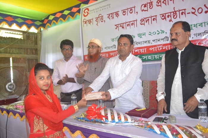 ৩৫ জন শিক্ষার্থীকে ১২ হাজার টাকা করে শিক্ষাবৃত্তি, ৭৫ জনকে বয়স্কভাতা এবং ১২জনকে শ্রেষ্ঠ প্রবীণ সম্মাননা দেয় বেসরকারি সংস্থা সাউথ এশিয়া পার্টনারশীপ (স্যাপ) বাংলাদেশ বাস্তবায়নে এবং এতে আর্থিক সহায়তা করে পল্লী কর্ম- সহায়ক ফাউন্ডেশন ( পিকেএসএফ)।