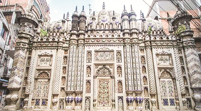 মসজিদের মূল সৌন্দর্য ও বৈশিষ্ট্য চিনিটিকরির কারুকাজ ও নির্মাণশিল্পীদের নিখুঁত কর্মযজ্ঞ। দেয়াল ও ফলকগুলো মোগলীয় নির্মাণশৈলী ও রীতি সাজানো এবং সৌন্দর্যকরণ করা হয়েছে। মূল স্থাপনার ছাদে রয়েছে সুবিশাল তিনটি গম্বুজ। রঙবেরঙের চীনামাটির টুকরোর পাশাপাশি ব্যাপকহারে চীনা মোজাইকেরও ব্যবহার করা হয়েছে। সৌন্দর্য ও ঐতিহ্যের স্মারক মসজিদটিকে ‘চিনির টুকরার মসজিদ’ বলে থাকেন। কিন্তু প্রাচীনতার কারণে ও কিছুটা অযত্নে মসজিদের নয়নাভিরাম সৌন্দর্যগুলো দিনদিন নষ্ট হতে চলেছে। কিছু পাথর ও উজ্জ্বল টালিগুলো খসে পড়ার উপক্রম হয়েছে। শতবর্ষী এই মসজিদের দেয়ালের কিছু অংশে মোজাইক উঠে গিয়ে ভেতরের লাল ইট উঁকি দিচ্ছে। কোথাও কোথাও ফিকে হয়ে গেছে কাচের নীল-সবুজ রং। তবে পুরোনো আমলের কাঠের দরজায় ও বারান্দার ছাদের কাঠের চেহারা সহজেই মনে করিয়ে দেয় পুরোনো স্মৃতি। এক সময় পুরোনো ঐতিহ্যবাহী ‘চিনির টুকরো’ মসজিদের আশপাশে তেমন বাড়িঘর ও দোকানপাট ছিল না। শুরু থেকে আশির দশকের শেষ দিকেও অনেক বিদেশি পর্যটক আসতেন এই মসজিদ দেখতে।