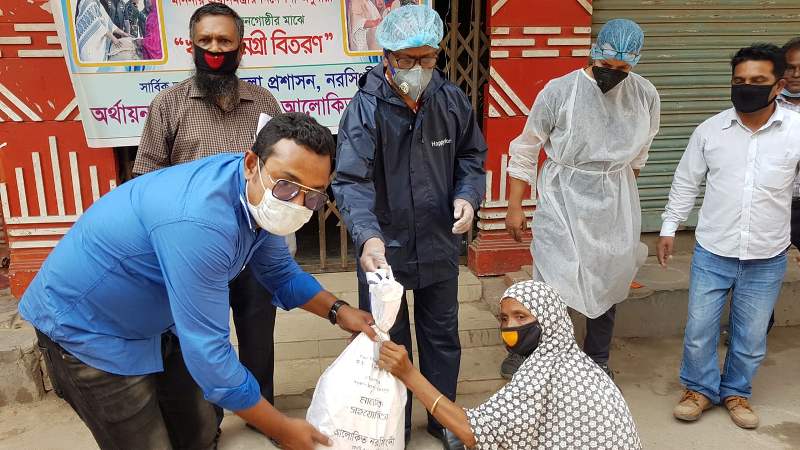 আজ সোমবার দুপুরে নরসিংদী শহরের বিভিন্ন স্থানে আলোকিত নরসিংদীর উদ্যোগে এ খাদ্য সামগ্রী বিতরণ করা হয়। এসময় সংগঠনের পক্ষ থেকে অর্ধশতাধিক দুস্থ পরিবারের মাঝে খাদ্যসামগ্রী বিতরণ করা হয়। এসময় প্রত্যেককের হাতে চাল, ডাল, আলু, পিয়াজ, তৈল ও মাস্ক সহ প্যাকেট তুলে দেওয়া হয়। আলোকিত নরসিংদী কয়েক ধাপে তিন শতাধিক অসহায় দুস্থ শ্রমিকদের পরিবারে খাদ্য সামগ্রী বিতরণ করেন।