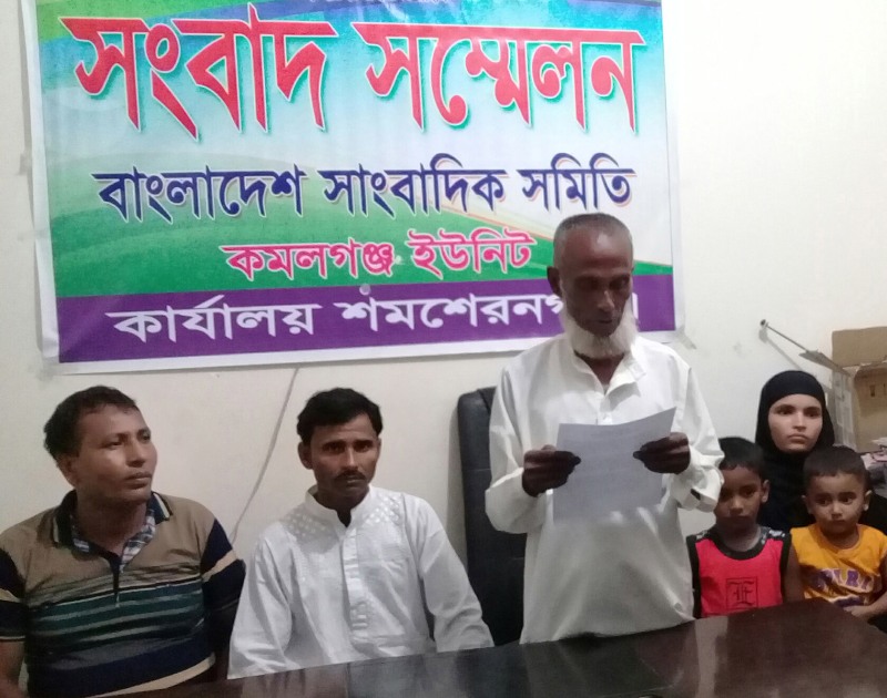 শুক্রবার সকাল সাড়ে ১১টায় কমলগঞ্জ সাংবাদিক সমিতির শমশেরনগরস্থ কার্যালয়ে এ সংবাদ সম্মেলনে আরো উপস্থিত ছিলেন এলাকার প্রবীন মুরব্বী মকারী মালি, আহমেদ আলী, মো. মজিদ আলী, দুদু মিয়া ও শাহাব উদ্দিনের স্ত্রী মোছা: বিলকিছ বেগম।