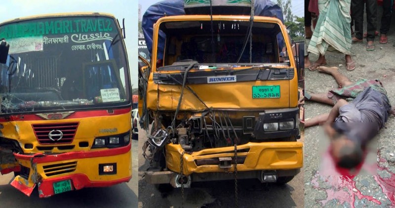 জানা যায়, ঢাকা থেকে নীলফামারীর দিকে যাওয়া কোচ সাথী পরিবহন (ঢাকা মেট্রে ব ১৪-১১৪০) এর সাথে বিপরীতমুখী ঢাকাগামী ট্রাক (বগুড়া-ট ১১-১৪৯৪) এর সাথে মুখোমূখী সংঘর্ষ হয়। এ সময় দুটি গাড়ির সামনের অংশ দুমড়ে মুচড়ে যাওয়ার পাশাপাশি মহাসড়কের কার্পেটিং এর কাজকরা শ্রমিক ফরিদুল ইসলামকে ধাক্কা দিলে ঘটনাস্থলেই সে মারা যায়। । ফায়ার সার্ভিস ষ্টেশন অফিসার মো. রতন হোসেন জানান, এ ঘটনায় ১জন নিহত ও ২জন আহত হেয়েছে। আহতদের বগুড়া শজিমেক হাসপাতালে পাঠানো হয়েছে-