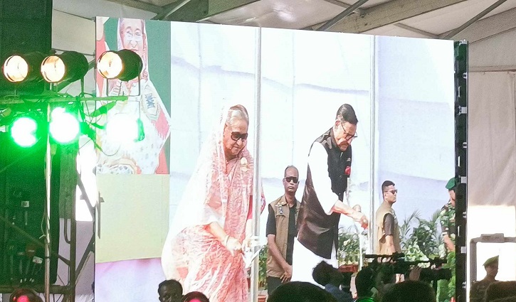ব্যাপক জাঁকজমকপূর্ণ, উৎসবমুখর ও আনন্দঘন পরিবেশে রাজধানীর সোহরাওয়ার্দী উদ্যানে আওয়ামী লীগের ‘প্লাটিনাম জুবিলি’র আলোচনা সভায় যোগ দিয়েছেন প্রধানমন্ত্রী শেখ হাসিনা।