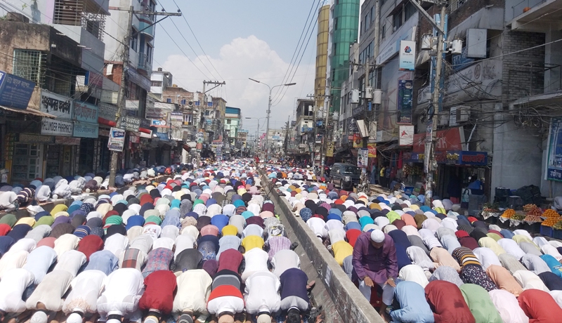 আজ শুক্রবার জুমাতুল বিদা উপলক্ষে দেশের বিভিন্ন প্রান্ত থেকে মানুষ এ মসজিদে নামাজ পড়তে আসে। সকাল ১১টার মধ্যেই বিশাল মসজিদের প্রথম ও দ্বিতীয় তলায় কানায় কানায় পরিপূর্ণ হয়ে যায়।
