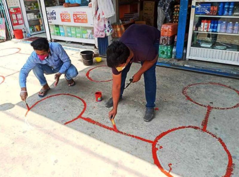 আর এসব কথা চিন্তা করে মুন্সীগঞ্জের লৌহজং উপজেলা ছাত্রলীগ এক ব্যতিক্রম উদ্দ্যোগ নিয়েছে। তারা উপজেলার ১০টি ইউনিয়নের প্রায় প্রতিটি বাজারের এসব দোকানের সামনে তিন ফুট অন্তর অন্তর গোলাকার বৃত্ত চিহ্ন অঙ্কন করেছে।