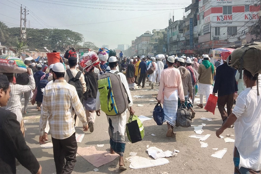 টঙ্গী স্টেশন রোড, টঙ্গী বাজার, চেরাগ আলী, কলেজ গেট, মিলগেট, কামারপাড়া, আব্দুল্লাহপুর, বিমানবন্দর, উত্তরা, দৌড়ব্রিজসহ ইজতেমা ময়দান থেকে বের হওয়ার সব রাস্তায় এখন বাড়িমুখো মানুষের ঢল। ইজতেমা শেষে বাড়িমুখো মুসল্লি জামালপুরের আহাদ মিয়া বলেন, মোনাজাত শেষ করলাম। আল্লাহর কাছে ক্ষমা চেয়েছি। নিজের জন্য ও সব মৃত মানুষের জন্য দোয়া করেছি। এখন ট্রেনে বাড়ি যাব।