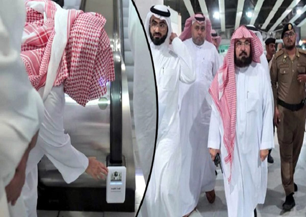 মসজিদে হারাম ও মসজিদে নববির প্রধান তত্ত্ববধায়ক ও প্রধান ইমাম শায়খ ড. আব্দুর রহমান সুদাইসি সোমবার জীবানুনাশক ‘উদ্ভাবনী যন্ত্র’ স্কেলেটরে পরীক্ষামূলক স্থাপন কার্যক্রম পরিদর্শন করেন । জীবানুনাশক এ স্বয়ংক্রিয় মেশিন স্থাপন প্রকল্পের ব্যাপারে তিনি বিস্তারিত বর্ণনা করেন।