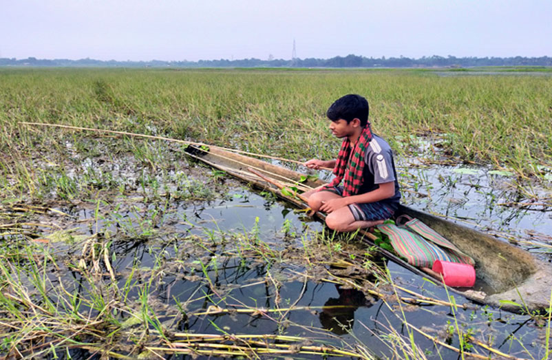 কৃষি কার্যালয়ের তথ্যে ও ভৌগলিক মানচিত্রে রয়েছে তিন ফসলি ধানিজমি। কিন্তু বাস্তবচিত্র তার ঠিক উল্টো। সেখানে বছরে মাত্র একবার ধান চাষ করা হয়। হাটু সমান পানি জমে থাকায় বছরের সাত থেকে আট মাস পতিত থাকে প্রায় সাড়ে চার হাজার বিঘা কৃষিজমি। ওই পতিত জমিতে আবার বাসা বাঁধে কলমি, কচুরি, শাপলা ফুলসহ নানান প্রকার আগাছা। সেখানে নানা উপকরণ দিয়ে কেউ আবার ধরে মাছ। এমনই চিত্র কুষ্টিয়ার কুমারখালী উপজেলার নন্দলালপুর ইউনিয়নের বহলবাড়ীয়া, চাঁদপুর ও বাঁশআড়া বিলে। তিনটা বিল পাশাপাশি অবস্থিত।