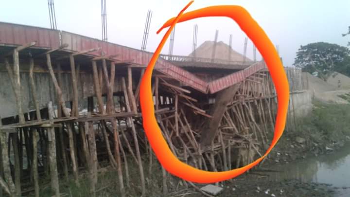 ঢালাই দেওয়ার রাতেই ধ্বসে পড়েছে নির্মানাধীন ব্রীজ। শহরের চান্দের পাড়া ব্রীজটি দীর্ঘ ৩বছর ধরে নির্মানাধীন ব্রীজটি তড়িঘড়ি করে ঢালাই দিতে গেলে এই বিপত্তিঘটে বলে জানান এলাকাবাসী। তাদের দাবী ব্রীজ নির্মাণে চরম অনিয়ম দূর্নীতির কারনে ছাদ ঢালাই দেওয়ার রাতেই ব্রীজটি ধ্বসে পড়েছে। এলাকাবাসীর দাবী প্রকৌশলী সহ ঠিকাদার মিলে চরম দূর্নীতি হওয়ায় এই অবস্থা। এতে এলাকাবাসী চরম অসুবিধায় আছে।