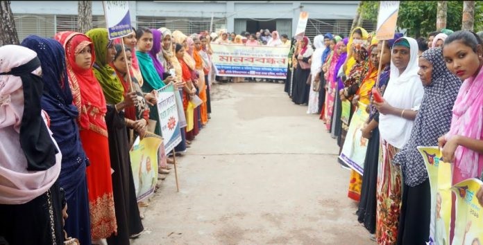 বুধবার বেলা ১১ টায় উপজেলা পরিষদ চত্বরে নারী অধিকার ও নারী নির্যাতন, নারীর প্রতি বৈষম্য দূর করতে বিভিন্ন শ্রেণি পেশার নারীদের এক মানববন্ধন কর্মসূচি পালন ও সমাবেশ অনুষ্ঠিত হয়।