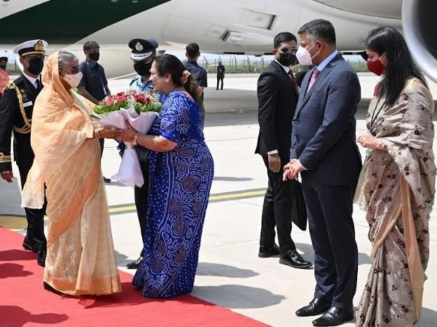 সেখানে বাংলাদেশের প্রধানমন্ত্রীকে ভারতের রেল ও বস্ত্র প্রতিমন্ত্রী দর্শনা বিক্রম এবং ভারতে বাংলাদেশের হাইকমিশনার মুহাম্মদ ইমরান অভ্যর্থনা জানান।