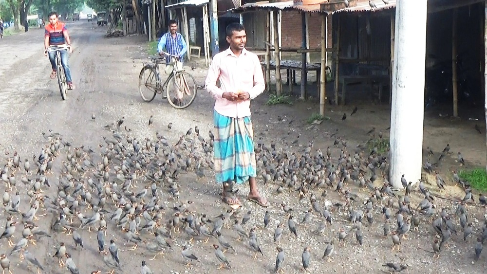 ভ্যানচালক রিপনের সাথে কথা বলে জানা যায়, গাড়াগঞ্জ বাজারপাড়া এলাকার বাসিন্দা তিনি। ব্যাটারী চালিত ভ্যান চালিয়ে যা রোজগার হয় তা দিয়েই চলে তার সংসার। প্রতিদিন সকালে বাড়ি থেকে বের হয়ে আসার পর মধু বিশ্বাসের দোকানের সামনে এলেই শালিকের ঝাঁক তাকে দেখে কিচির মিচির শব্দ শুরু করেন। নিজের অল্প আয় থেকে টাকা বাঁচিয়ে পাউরুটি, চানাচুরসহ নানা প্রকার খাবার দেন তিনি। পাখিদের কিচির মিচির শব্দ আর খাবার শেষে পাখিদের জলকেলিতে মাতার দৃশ্য যেন মনোমুগ্ধকর। যা দেখে মুগ্ধ আশপাশের মানুষগুলো।