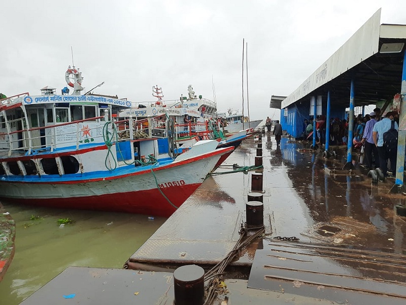 বৈরী আবহাওয়ার কারণে মুন্সীগঞ্জের শিমুলিয়া ও মাদারীপুর কাঁঠালবাড়ি নৌপথে লঞ্চ ও স্পিডবোট চলাচল বন্ধ রয়েছে। দুুর্ঘটনা এড়াতে গত বৃহস্পতিবার বিকেল থেকে গতকাল শুক্রবার বিকেল নৌচলাচল বন্ধ রাখার নির্দেশ দেয় কর্তৃপক্ষ। এতে করে লঞ্চ ও স্পিডবোট ঘাটে আটকা পড়ে চরম দুর্ভোগে আছে শতশত যাত্রী।