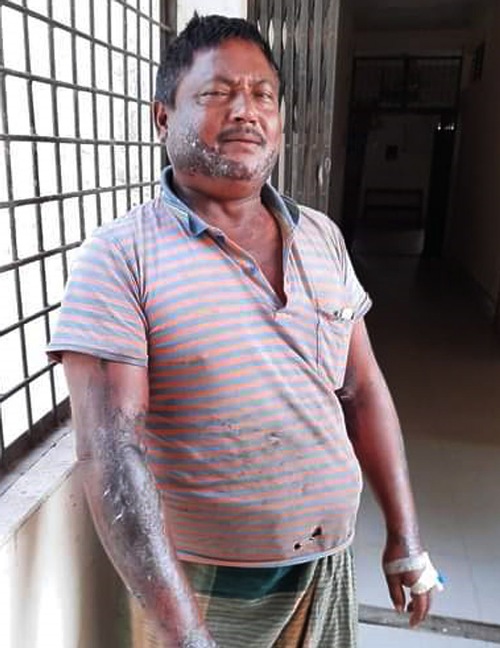 দিনাজপুরের ঘোড়াঘাটে শ্বশুর বাড়ির লোকজন এবং নিজের স্ত্রীকে ফাঁসাতে নিজের শরীরে নিজেই এসিড মেখে ঝলসিত করার ঘটনা ঘটেছে।