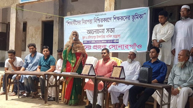 নারায়ণগঞ্জের সোনারগাঁ উপজেলায় প্রজন্ম সোনারগাঁ এর আয়োজনে শিক্ষার্থীদের নিরাপত্তা নিশ্চিতে শিক্ষকদের ভূমিকা শীর্ষক আলোচনা সভা অনুষ্ঠিত হয়েছে। আজ শনিবার উপজেলার সনমান্দী ইউনিয়নের দৌলতপুর ইসলামিয়া দাখিল মাদরাসায় এ সভা অনুষ্ঠিত হয়।