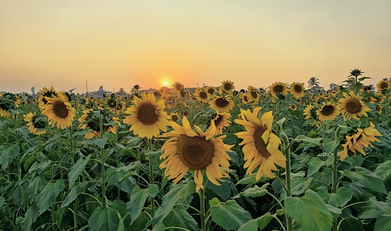 সূর্যের দিকে তাকিয়ে হাসিমাখা মুখের এক ফুলের নাম সূর্যমুখী। আর তা যদি হয় দিগন্তবিস্তৃত মাঠজুড়ে হাজার হাজার এ ফুলের সমাহার। তবে তো কথাই নাই। সূর্যমুখীর হলুদের আভায় চারিদিকে যেন ছড়িয়ে আছে অপার মুগ্ধতায়। ফুলের পাঁপড়িগুলো বাতাসে দোল খেয়ে খেয়ে দর্শনার্থীদের আমন্ত্রণ জানাচ্ছে এর সৌন্দর্য উপভোগে। এমনই এক মনোমুগ্ধকর সৌন্দর্যের দেখা মিলছে নরসিংদীর শেখ হাসিনা সেতু সংলগ্ন মেঘনা নদীর তীরবর্তী সূর্যমুখী ফুলের বাগানে। এর মায়া পড়ে অসংখ্য প্রকৃতিপ্রেমী মানুষ ভিড় করছে এই ফুলের বাগানে। তবে বাগানের এউ অপরূপ সৌন্দর্য উপভোগ করতে আপনাকে গুনতে হবে মাত্র ২০ টাকা।