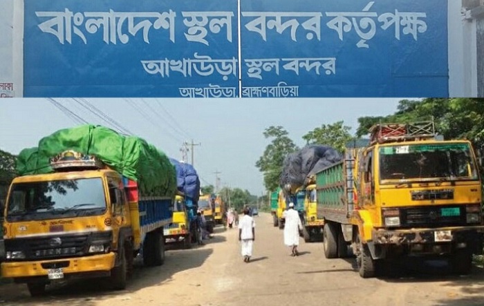 ব্রাহ্মণবাড়িয়ার আখাউড়া স্থলবন্দর দু’দিন বন্ধ থাকার পর সোমবার সকাল থেকে যাবতীয় আমদানি রফতানি কার্যক্রম শুরু হয়েছে। খ্রিষ্টান সম্প্রদায়ের বড়দিন (ক্রিসমাস) ও উপজেলা ইউনিয়ন পরিষদ নির্বাচনের কারণে এ স্থল বন্দর দু’দিন বন্ধ রাখা হয়। তবে এসময় উভয় দেশের পাসপোর্টধারী যাত্রী পারাপার স্বাভাবিক ছিল।