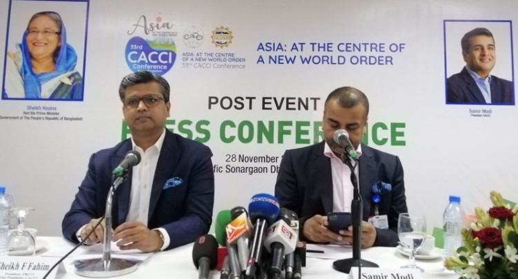 গতকাল রাজধানীর সোনারগাঁও হোটেলে দেশের ব্যবসায়ীদের শীর্ষ সংগঠন এফবিসিসিআই ও কনফেডারেশন অব এশিয়া প্যাসিফিক চেম্বার্স অব কমার্স অ্যান্ড ইন্ডাস্ট্রির (সিএসিসিআই) যৌথ সংবাদ সম্মেলনে এ তথ্য জানানো হয়। ওই সময় এফবিসিসিআই সভাপতি শেখ ফজলে ফাহিম ও সিএসিসিআই সভাপতি সামির মোদি উপস্থিত ছিলেন।