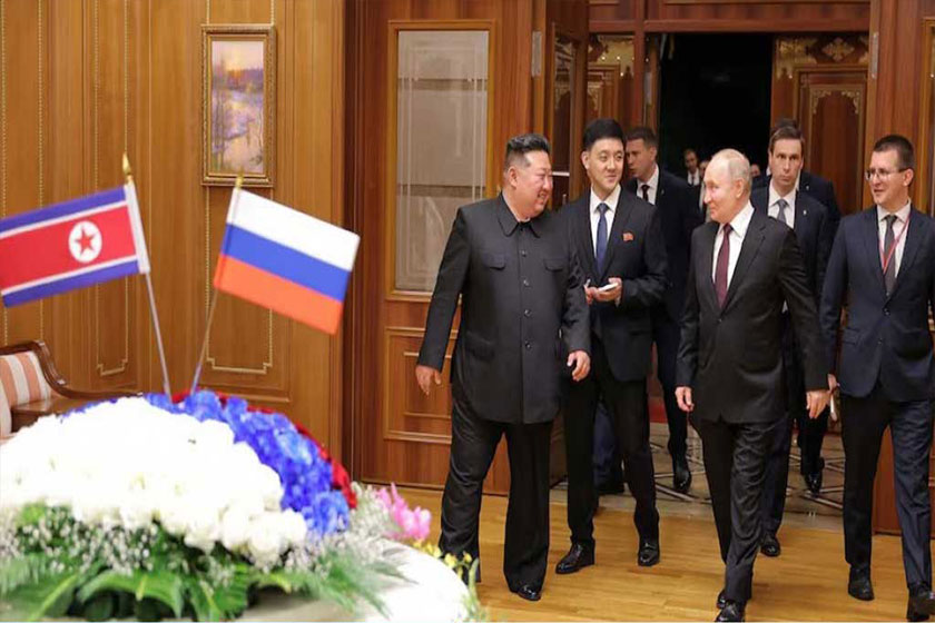 উত্তর কোরিয়ার সর্বোচ্চ নেতা কিম জং উনের সঙ্গে দ্বিপক্ষীয় প্রতিরক্ষা সংক্রান্ত একটি চুক্তি স্বাক্ষর করেছেন রাশিয়ার প্রেসিডেন্ট ভ্লাদিমির পুতিন। পিয়ংইয়ং সফরকালে গত বুধবার এ চুক্তি স্বাক্ষরিত হয়। এটিকে ‘জোটের মতো’ বলে উল্লেখ করেছেন কিম। খবর রয়টার্সের।