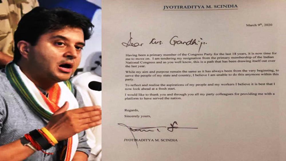কংগ্রেস সভাপতি সোনিয়া গান্ধীর কাছে আজ মঙ্গলবার পদত্যাগ পত্র জমা দেন সিন্ধিয়া। পদত্যাগপত্রে তিনি লিখেন, গত ১৮ বছর ধরে ভারতের জাতীয় কংগ্রেসের একনিষ্ঠ কর্মী হিসাবে কাজ করেছেন। কিন্ত এখন সময় এসেছে কংগ্রেস ছাড়ার।