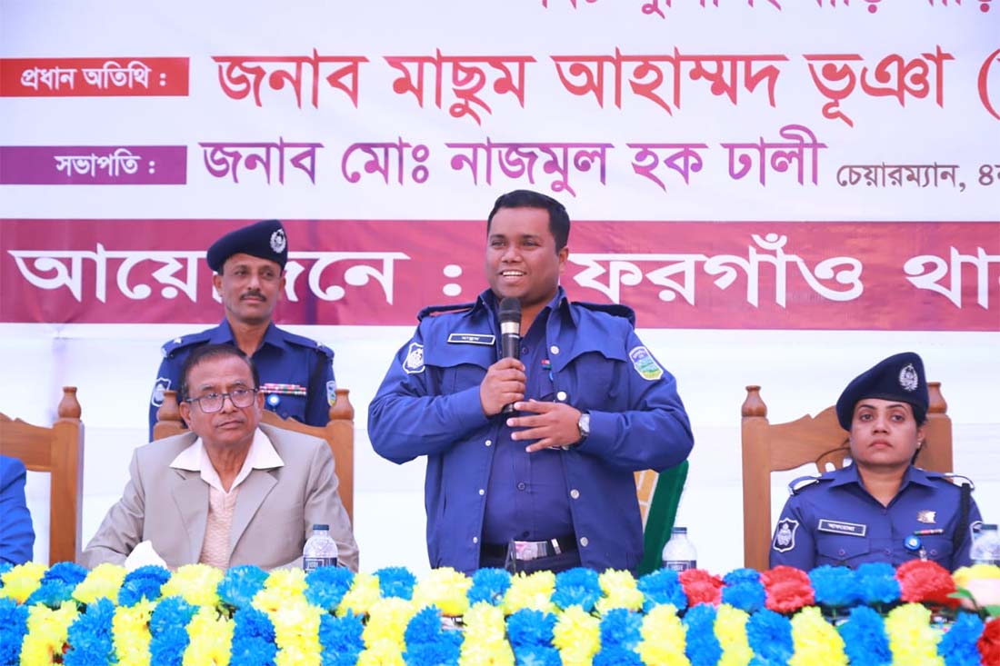 আমরা বঙ্গবন্ধু ও প্রধানমন্ত্রী শখ হাসিনার স্বপ্নের জনবান্ধব পুলিশ হতে চাই। সমাবেশে বিশেষ অতিথি হিসেবে বক্তব্যে রাখেন গফরগাঁও উপজেলা পরিষদ চেয়ারম্যান আশরাফ উদ্দিন বাদল, উপজেলা আওয়ামীলীগের সাধারণ সম্পাদক বারবাড়িয়া ইউনিয়ন পরিষদের চেয়ারম্যান আবুল কাশেম, উপজেলা নির্বাহী কর্মকর্তা আবিদুর রহমান, গফরগাঁও থানার ওসি ফারুক আহমেদ, পাগলা থানার ওসি মোহাম্মদ রাশেদুজ্জামান, এ ছাড়াও বক্তব্যে রাখেন গফরগাঁও উপজেলা পরিষদের ভাইস চেয়ারম্যান উপাধক্ষ মাউলানা আতাউর রহমান , মহিলা ভাইস চেয়ারম্যান রেশমা আক্তার, ইউপি চেয়ারম্যান তারিকুল ইসলাম রিয়েল, গফরগাঁও থানা কমিনিউটি পুলিশিং এর সভাপতি সালটিয়া ইউনিয়ন পরিষদের চেয়ারম্যান নাজমুল হক ঢালীর সভাপতিত্বে অনুষ্ঠিত সমাবেশ পরিচালণা করেন গফগাঁও থানার ওসি তদন্ত আনোয়ার হোসেন। উল্লেখ্য ময়মনসংিহ জেলা পুলিশ সুপার এসপি হিসেবে যোগদানের মাত্র ১৫দিনের মধ্যে ময়মনসিংহ নগরীরর যুগ যুগের ভয়াবহ যানজট নিরসনে যুগান্তকারী প্রদক্ষেপ গ্রহণ করে প্রথম আলোচিত হয়ে উঠেন এসপি মাছুম আহমেদ ভুঞা। বিট পলিশিং সমাবেশ শেষে বিট পুলিশিং সদস্যসহ দুঃস্থ অসহায় শীতার্থদের মাঝে কম্বল বিতরণ করেন তিনি। কম্বল বিতরণ কালে তার নজরে পড়ে অনকটা দুরে বেশ কয়েকজন প্রতিবন্ধি ও বয়স্ক মানুষ কম্বল নিতে কাছে আসার চেষ্টা করেও প্রচন্ড ভীড়ের কারনে আসতে পারছেনা। জনবান্ধব ও মানবদরদীা এসপি মাছুম আহমেদ ভুঞা নিজেই মঞ্চ থেকে নেমে অসহায় হতদরিদ্রদের কাছে গিয়ে নিজ হাতে সবাইকে কম্বল প্রদান করেন। অনেকটা চ্যালেঞ্জ ছুড়ে দিয়েই নগরীর ভয়বহ যানজট নিরসনে রাস্তার দুপাশে গড়ে উঠা তিন শতাধিক অবৈধ স্থাপনা উচ্ছেদ করে রেকর্ড সৃষ্টি করেন নীতির প্রশ্নে আপোষহীণ দায়িত্ব পালনের ক্ষেত্রে ডেম কেয়ার ষ্টাইলের এই এসপি মাছুম আহমেদ ভুঞা। তিনি যোগদানের পর তারঁ নামের উপরই অনেকটাই পাল্টেগছে জেলার সব কটি থানার চালচিত্র।