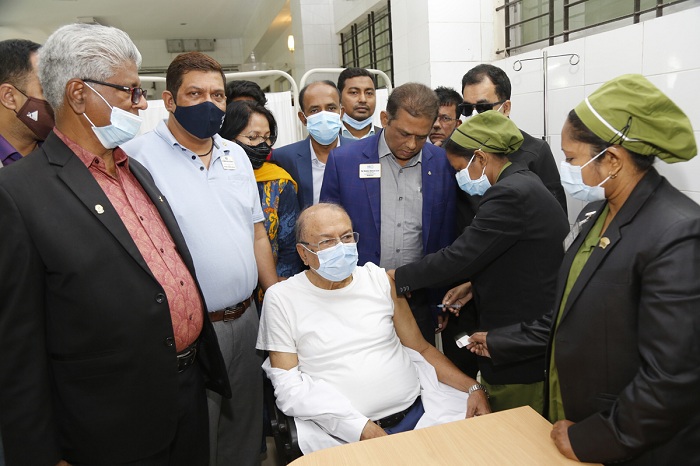 লায়ন্স ক্লাবস ইন্টারন্যাশনালের ইন্টারন্যাশনাল ডিরেক্টর ও স্ট্যান্ডার্ড ব্যাংক লিমিটেডের চেয়ারম্যান কাজী আকরাম উদ্দিন আহমেদ কোভিড-১৯ টিকার প্রথম ডোজ করেছেন।