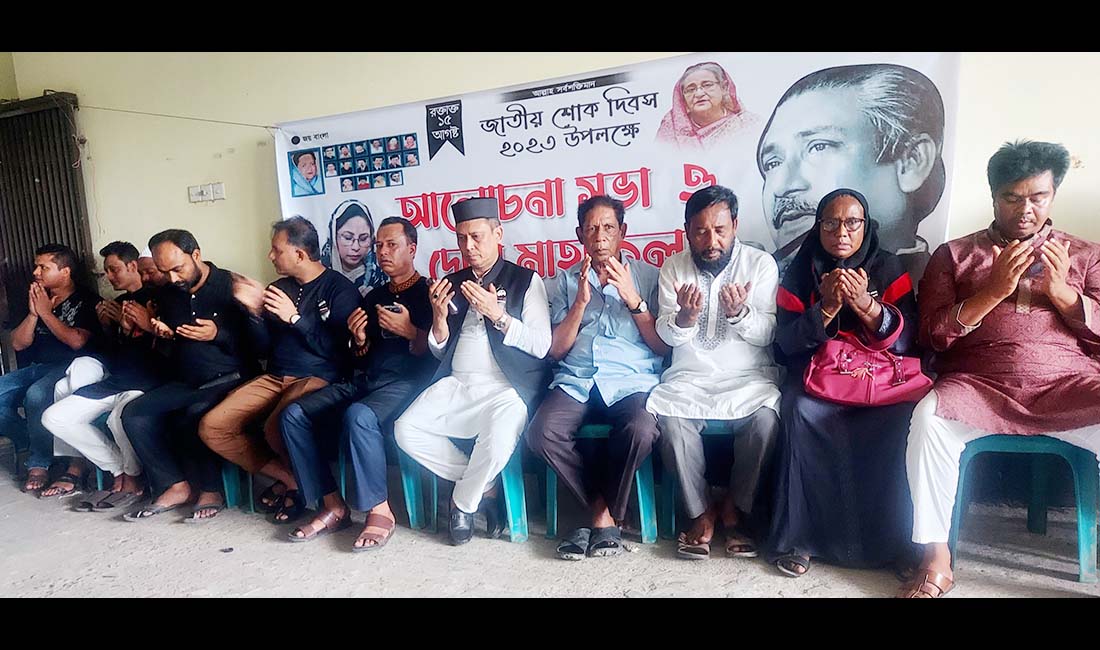 পরে জাতির পিতা বঙ্গবন্ধু শেখ মুজিবুর রহমান ও তাঁর পরিবারের রুহের মাগফেরাত কামনা করে বিশেষ দোয়া পরিচালনা করেন ভাদাত্তর্ী বাইতুল মামুর জামে মসজিদের ইমাম।