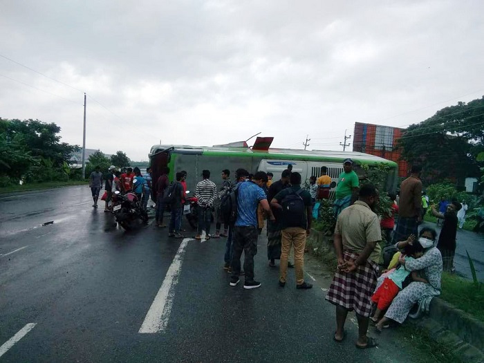 দাউদকান্দি হাইওয়ে থানার ওসি সরকার আবদুল্লাহ আল-মামুন জানান, নোয়াখালী-ঢাকা রুটে চলাচল করা লাল-সবুজ পরিবহনের একটি বাস ঢাকায় যাচ্ছিলো। আমিরাবাদ এলাকায় পৌঁছলে বাসটি নিয়ন্ত্রণ হারিয়ে সড়কের আইল্যান্ডের সাথে ধাক্কা লেগে উল্টে যায়। এসময় ঘটনাস্থলে থাকা এক পথচারী নিহত হয়। আহত হয় আরও এক পথচরী। বাসের ভিতরে থাকা কিছু যাত্রী সামান্য আহত হয়।