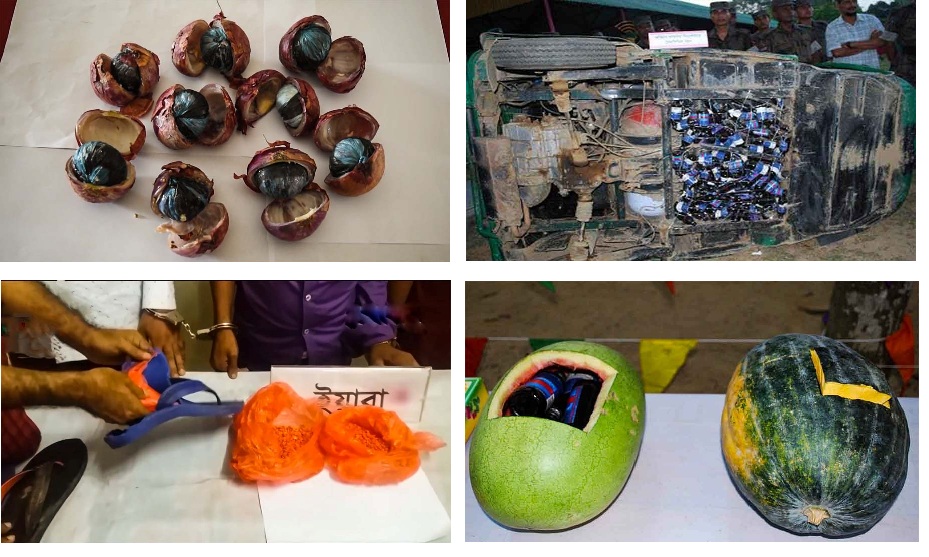 সাম্প্রতিক সময়ে মাদক পাচারে নতুন কৌশল নিয়েছে তারা। ভারত থেকে রাতে আসা গরুর পেটের সাথে বেঁধে আনা হয় গাঁজা। চোরাচালানীদের ভাষায় এটি হলো ক্যাটল কেরিং। বড় পেঁয়াজের ভিতরের অংশ ফেলে দিয়ে এর ভিতরে আনা হচ্ছে ইয়াবা ট্যাবলেট। আখকে লম্বা লম্বিভাবে দুই ফালি করে ভেতরের রসালো অংশকে ফেলে দিয়ে ভেতরে ইয়াবা ঢুকিয়ে আনা হচ্ছে এ দেশে। এ ছাড়াও কনডমের মধ্যে ইয়াবা ট্যাবলেট ভরে মানুষের মুখ দিয়ে পেটে ঢুকিয়ে এবং কনডমের মধ্যে ইয়াবা ট্যাবলেট ঢুকিয়ে পায়ূ পথে পেটে ঢুকিয়ে এ দেশে আনা হচ্ছে। এ ছাড়াও দীর্ঘদিন ধরে মৌসুমী ফল তরমুজ, কাঁঠাল, লাউ, কুমড়ার ভেতর ঢুকিয়ে ভারত থেকে আনা হচ্ছে ফেনসিডিল, ইয়াবা, গাঁজাসহ অন্যান্য মাদকদ্রব্য। মিষ্টি ও শাড়ির প্যাকেট, গিফট বক্স, দুধের কলসী, পানির বদনায় করেও পাচার হয়ে আসছে বিভিন্ন ধরনের মাদক। সিএনজি অটোরিক্সা, বেবী টেক্সী, ছোট যানবাহনের ইঞ্জিনের নিচে, মোটর সাইকেলের সিটের নিচে ও যানবাহনের টুল বাক্স, ট্রাকের পাটাতন, ট্রাক ও বাসের চালকের সিটের নিচের বাক্স করে ভারত থেকে পাচার হয়ে আসছে এ সব মাদক। বিভিন্ন পথে ছড়িয়ে পড়ছে দেশের বিভিন্ন স্থানে।