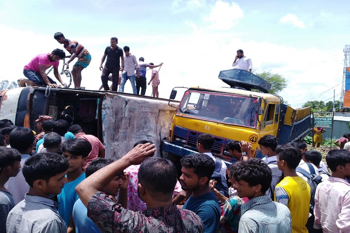 প্রত্যক্ষদর্শীরা জানিয়েছেন, বাসটি দ্রুতগতিতে ভাটিয়াপাড়া মোড় ঘুরার সময় রাস্তার ওপর উল্টে যায়। এতে বাসের নিচে চাপা পড়ে ঘটনাস্থলে ৩ জন নিহত হন। পরে খবর পেয়ে পুলিশ ও ফায়ার সার্ভিস কর্মীরা হতাহতদের উদ্ধার করে হাসপাতালে পাঠায়।