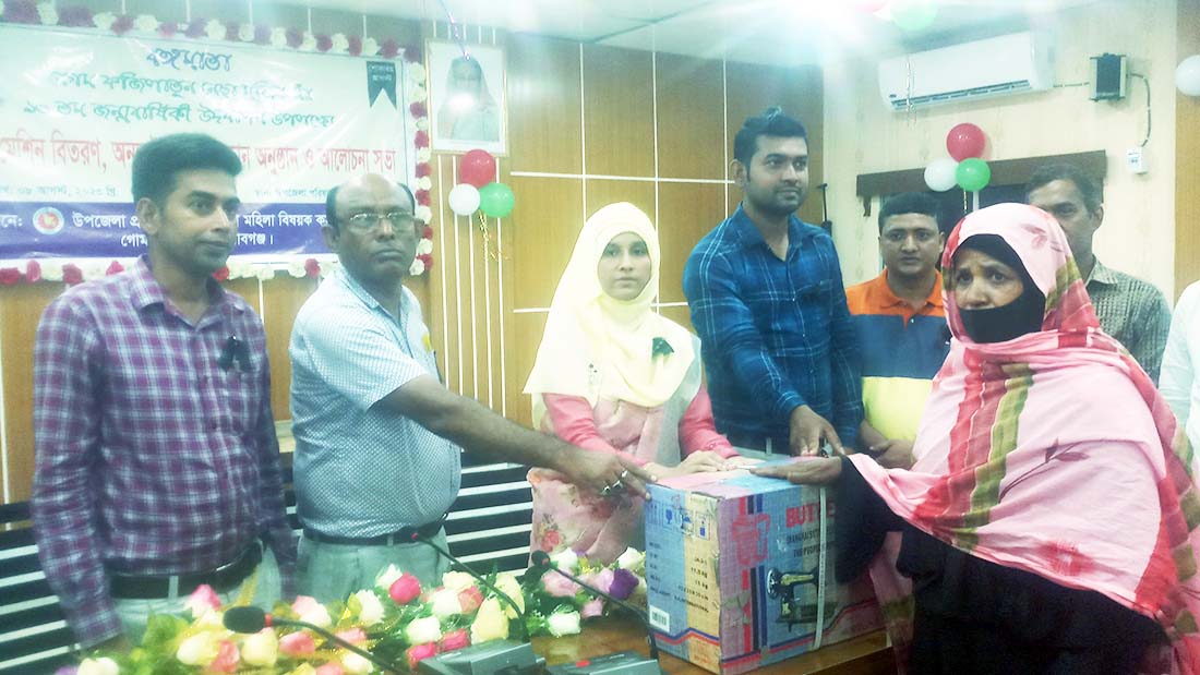 বঙ্গমাতা বেগম ফজিলাতুন্নেছা মুজিব এর ৯৩ তম জন্ম বার্ষিকি উদযাপন উপলক্ষে সেলাই মেশিন বিতরণ, অনলাইনে টাকা প্রদান অনুষ্ঠান ও আলোচনা সভা অনুষ্ঠিত হয়। উপজেলা প্রশাসন ও উপজেলা মহিলা বিষয়ক অফিসের আয়োজনে মঙ্গলবার সকাল এগারোটায় উপজেলা সভাকক্ষে আলোচনা সভায় সভাপতিত্ব করেন উপজেলা মহিলা বিষয়ক কর্মকর্তা পঙ্কজ কুমার দাস। প্রধান অতিথি ছিলেন উপজেলা নির্বাহী অফিসার আসমা খাতুন। বক্তব্য রাখেন উপজেলা কৃষি সম্প্রসারন অফিসার ফিরোজ আলি, উপজেলা সমাজসেবা অফিসার নুরুল ইসলাম, উপজেলা স্বাস্থ্য ও পরিবার পরিকল্পনা অফিসার ডাঃ আঃ হামিদ, গোমস্তাপুর উপজেলা প্রেসক্লাব সভাপতি নুর মোহাম্মদ প্রমুখ। সভা শেষে আট জন অসহায় দুঃস্থ নারীদের মাঝে শেলাই মেশিন বিতরণ ও অনলাইন এর মাধ্যমে আট জন অসহায় দুঃস্থ নারীকে দুই হাজার টাকা করে প্রদান করা হয়। এছাড়া বঙ্গমাতা বেগম ফজিলাতুন্নেছা মুজিব এর আত্মজীবনি তথ্য আপা অফিস প্রদর্শন করে।