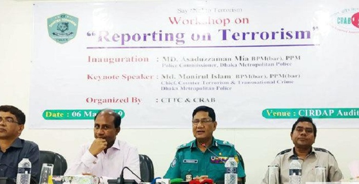 রাজধানীর সিরডাপ মিলনায়তনে ক্রাইম রিপোর্টার্স অ্যাসোসিয়েশন (ক্র্যাব) ও ডিএমপির কাউন্টার টেরোরিজম অ্যান্ড ট্রান্সন্যাশনাল ক্রাইম ইউনিটের যৌথ উদ্যোগে সাংবাদিকদের নিয়ে এ কর্মশালার আয়োজন করা হয়।