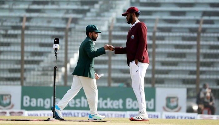 ওয়েস্ট ইনন্ডিজের বিপক্ষে সিরিজ বাঁচানোর লড়াইয়ে দ্বিতীয় ও শেষ টেস্ট খেলতে নেমেছে বাংলাদেশ। যেখানে টস জিতে ব্যাট করার সিদ্ধান্ত নিয়েছেন ক্যারিবীয় অধিনায়ক। সাগরপারে প্রথম টেস্টে টস জিতে ব্যাটিংয় নিয়েছিল টাইগাররা। কিন্তু ঢাকা টেস্টে সেই ধারাবাহিকতা আর থাকলো না। টস ভাগ্যটা ওয়েস্ট ইন্ডিজের কপালেই জুটেছে।
