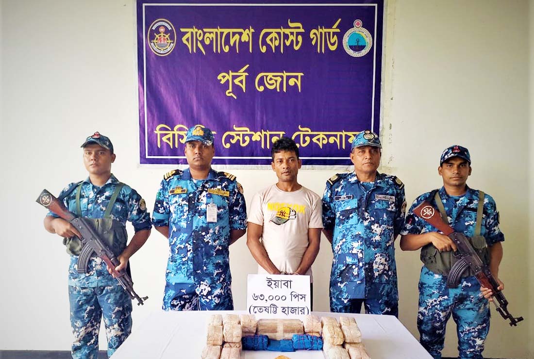 তিনি বলেন, বিশেষ গোয়েন্দা তথ্যের ভিত্তিতে জানা যায় টেকনাফ থানাধীন কেকে পাড়া, ০৩ নং ওয়ার্ডের বাসিন্দা মোঃ আবুল বাশারের বাড়ির আঙ্গিনায় বিক্রির উদ্দেশ্যে মাদকদ্রব্য লুকিয়ে রাখা হয়েছে। প্রাপ্ত তথ্যের ভিত্তিতে বুধবার ১৪ জুন ২০২৩ তারিখ আনুমানিক সকাল ০৯১০ ঘটিকায় বাংলাদেশ কোস্ট গার্ড স্টেশন টেকনাফ কর্তৃক কন্টিনজেন্ট কমান্ডার টেকনাফ এর নেতৃত্বে উক্ত স্থানে একটি বিশেষ অভিযান পরিচালনা করা হয়। অভিযান চলাকালীন কোস্ট গার্ডের উপিস্থিতি বুঝতে পেরে মোঃ আবুল বাশার (৩৮) বাড়ি থেকে পালানের চেষ্টা করে। এ সময় কোস্ট গার্ড সদস্য কর্তৃক ধাওয়া করে উক্ত ব্যক্তিকে আটক করতে সক্ষম হয়। পরবর্তীতে কোস্ট গার্ড এর আভিযানিক দল কর্তৃক উক্ত বাড়ির আঙ্গিনায় তল্লাশি করে লাকড়ির স্তুপের মধ্যে অভিনব কায়দায় লুকিয়ে রাখা ১টি প্লাষ্টিকের বস্তা হতে ৬৩,০০০(তেষট্টি হাজার) পিস ইয়াবা জব্দ করা হয়।