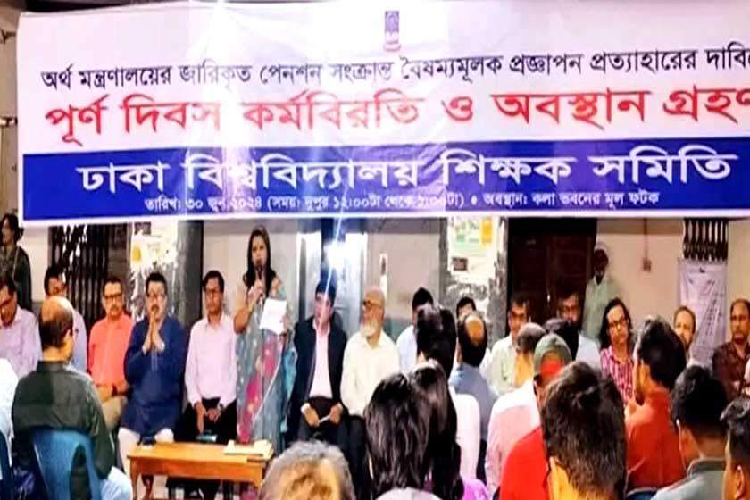 বৈষম্যমূলক পে-স্কেল ও পেনশন স্কেলের প্রতিবাদে আজ সোমবার (১ জুলাই ২০২৪) থেকে সর্বাত্মক কর্মবিরতি পালন করছেন ঢাকা বিশ্ববিদ্যালয়সহ দেশের সব পাবলিক বিশ্ববিদ্যালয়ের শিক্ষক ও কর্মকর্তারা। যার কারণে বন্ধ রয়েছে সকল প্রকার ক্লাস ও পরীক্ষা।