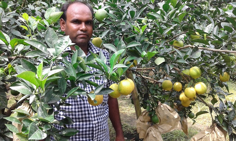গ্রামের কৃষক ইসমাইল হোসেন। দীর্ঘ ৬ বছর প্রবাস জীবন শেষে ২০০৬ সালে দেশে ফেরেন । অনান্য পেশায় না গিয়ে শুরু করেন চাষাবাদ। প্রথমে সবজিসহ নানামূখি চাষবাস করলেও সংসারের ব্যয় মেটাতে হিমসীম খেতে হচ্ছিল তাকে। বীজ, সার, তেল শ্রমিকের খরচ মেটাতে গিয়ে লাভের বদলে লোকসান গুণতে হচ্ছিল। ভেবে চিন্তে ২০১৪ সালে কৃষি সম্প্রসারণ অধিদপ্তরের দেয়া বারি মাল্টা-১ এর ৫০ টি চারা তার ১২ কাঠা জমির পটল ক্ষেতের মধ্যে রোপন করেন। পরিচর্যার দেড় বছরের মাথায় গাছে ফুল আসতে শুরু করে। দুই বছরের মাথায় গাছে ফল ধরে। ওই বছরে ৬০ হাজার টাকার মাল্টা বিক্রি করেন তিনি। পরে গ্রাপ্টিং পদ্ধতিতে চারা তৈরি করে তিন লাখ টাকার চারা বিক্রি করেন। লাভজনক হওয়ায় বর্তমানে তার বাগান বেড়ে সাড়ে ১৫ বিঘায় উন্নীত হয়েছে। এখন তার বাগানের গাছ গুলোর বয়স চার থেকে সাত বছর। বর্তমানে তার সকল গাছ ফল ফুলে ভরে আছে। প্রায় ১২ বিঘা বাগানেই রসালো মাল্টা ধরছে। এই সেপ্টেম্বর মাসের শুরু থেকেই মাল্টা বিক্রি শুরু হয়েছে। সাড়ে সাত লাখ টাকার মাল্টা বিক্রি করা হয়ে গেছে। আগামী ডিসেম্বর মাস পর্যন্ত অন্তত ৫০ লাখ টাকার মাল্টা ফল বিক্রির আশা করছেন তিনি। খরচ বাদে কমপক্ষে ৩০ লাখ টাকা ঘরে আসবে বলে আশা করছেন ইসমাইল হোসেন। ঢাকাসহ বাইরের জেলা থেকে ব্যবসায়ীরা এসে বাগান থেকে মাল্টা কিনে নিয়ে যাচ্ছেন। বর্তমানে প্রকার ভেদে ৮০ থেকে ১৫০ টাকা কেজি দরে বিক্রি হচ্ছে ফল। ক্রেতারা আগ্রহ ভরে অগ্রিম টাকা দিয়ে রাখছেন বাগান মালিককে। যেন ফল পাকার সাথে সাথে অগ্রিম টাকা দেওয়া ক্রেতাকে আগে সরবরাহ করা হয় সেই আশায়। শুধু মাল্টাই নয় কলম করে প্রতিটি চারা ১৫০টাকা থেকে ২৫০ টাকা দরে বিক্রি করে অন্তত ৫ লক্ষ টাকার চারাও বিক্রি করা সম্ভব হবে বলে দাবি ইসমাইল হোসেনের। প্রচলিত চাষের পরিবর্তে অপ্রচলিত মাল্টা ফল চাষ করে ভাগ্যের চাকা ঘুড়িয়ে জয়ী তিনি। এখন তিনি নিজেকে সফল চাষী হিসাবে দাবী করে নিজেই খুশি।