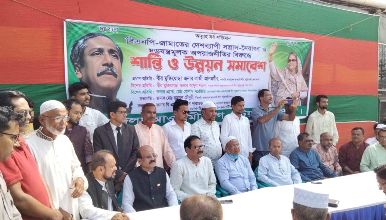 বিএনপি-জামায়াতের দেশ বিরোধী সন্ত্রাস ও নৈরাজ্যের প্রতিবাদে পটুয়াখালীতে শান্তি ও উন্নয়ন সমাবেশ অনুষ্ঠিত হয়েছে। বৃহস্পতিবার দুপুরে সদর উপজেলা আওয়ামী লীগের উদ্যোগে পল্লী বিদ্যুৎ সমিতি প্রাঙ্গন থেকে একটি মিছিল শুরু হয়ে শহর প্রদক্ষিন করে বড় চৌরাস্তায় গিয়ে শেষ হয়। মিছিল শেষে পায়রা রেস্তরা প্রাঙ্গনে সদর উপজেলা আওয়ামী লীগের সভাপতি মোঃ হুমায়ুন চৌধুরির সভাপতিত্বে শান্তি ও উন্নয়ন সমাবেশ অনুষ্ঠিত হয়।