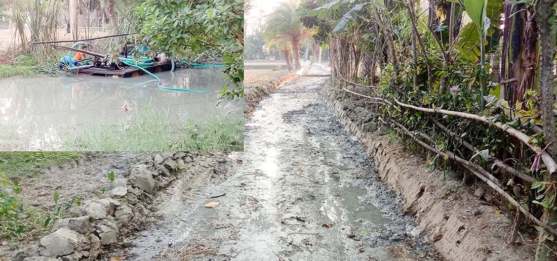 পটুয়াখালীর জৈনকাঠি ইউনিয়নে দরিদ্র বিমোচন কর্মসূচি ( ৪০ দিনের কর্মসূচি) গ্রামীন সড়কের কাজে সরকারি খাল থেকে বোমা মেশিন দিয়ে অবৈধভাবে বালু উত্তোলন করে কাজ করছেন জনপ্রতিনিধি