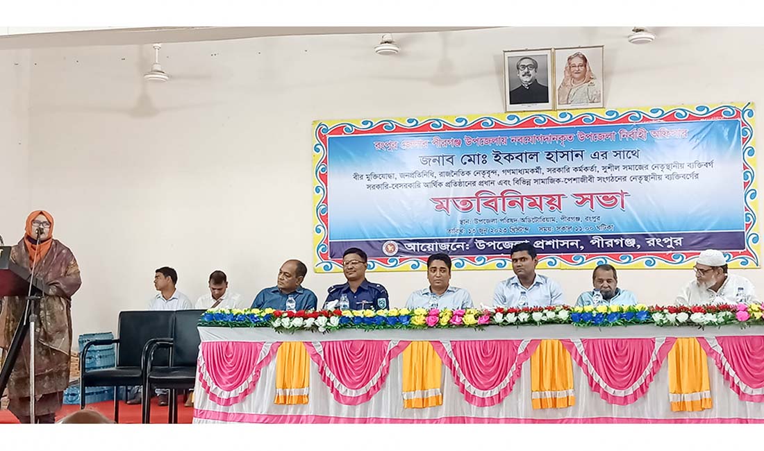 রংপুরের পীরগঞ্জে নব যোগদানকৃত নির্বাহী অফিসার ইকবাল হাসান বিভিন্ন শ্রেণীপেশার মানুষের সাথে মতবিনিময় সভা গতকাল দুর্যোগপূর্ণ আবোহাওয়ার মধ্যেও সুষ্ঠভাবে সম্পন্ন হয়েছে। বেলা ১২টার সময় উপজেলা প্রশাসন আয়োজিত উপজেলা পরিষদ অডিটোরিয়ামে নবাগত নির্বাহী অফিসারের সভাপতিত্বে বীর মুক্তিযোদ্ধা, রাজনৈতিক দলের নেতৃবৃন্দ, সরকারি কর্মকর্তা, গনমাধ্যমকমীর্, শিক্ষক, জনপ্রতিনিধি, ক্রীড়া সংগঠক, নৃ—গোষ্ঠী, ইমাম, ব্যবসায়ী, সনাতন ধর্মীলম্বীদের প্রতিনীধিসহ বিভিন্ন শ্রেণীপেশার লোকজন মতবিনিময় সভায় উপস্থিত থেকে বক্তব্য রাখেন। উপজেলা সমাজসেবা অফিসার আরিফুজ্জামানের সঞ্চালনায় বক্তারা পীরগঞ্জের উন্নয়ন, সম্ভবনা, সাফল্য, বর্তমান সরকারের উন্নয়ন কার্যক্রম প্রচার ও গতিশীল রাখতে মাননীয় প্রধানমন্ত্রীর ঘোষনানুযায়ী “স্মার্ট” বাংলাদেশ গড়তে বিশেষভাবে আহবান জানানো হয়। এছাড়াও যুব সমাজকে মাদকমুক্ত উপজেলা আইন—শৃঙ্খলা স্বাভাবিক রাখতে গত ৮—৯ মাসে দু’জন অফিসার ইনচার্জ বদলির বিষয়টি অশনি সংকেত বলে মনে করেন।যেহেতু পীরগঞ্জ বর্তমান প্রধানমন্ত্রীর নির্বচনী আসন সেহেতু মডেল পীরগঞ্জ গড়তে প্রশাসনকে আরো যত্নবান হওয়ার আহবান জানানো হয়। বক্তব্য রাখেন নবাগত অফিসার ইনচার্জ আনোয়ার হোসেন, কৃষিবিদ সাদেকুজ্জামান সরকার, উপজেলা আওয়ামীলীগের (ভার) সভাপতি অধ্যাপক নুরুল আমিন রাজা, জাগোবাহে২৪.কম চেয়ারম্যান আকতারুজ্জামান রানা, বীর মুক্তিযোদ্ধা আব্দুস ছাত্তার মন্ডল, উপজেলা আওয়ামীলীগের সহ সভাপতি আলহ্াজ মকবুল হোসেন সর্দার, যুগ্ম সাধারন সম্পাদক ময়নুল ইসলাম লাভলু, চেয়ারম্যান সমিতির সভাপতি এনামূল হক শাহীন, অবসরপ্রাপ্ত শিক্ষক আব্দুল হাকিম মিয়া, ক্রীড়া সংগঠক সুধীর চন্দ্র ও গনমাধ্যম কর্মীবৃন্দ। সভাপতির বক্তব্যে নবাগত নির্বাহী আফিসার বলেন প্রশাসনের ধারাবাহিকতায় পূণ্যভূমি পীরগঞ্জে আমি যোগদান করেছি। দিন শেষে আমরা সকলেই মানুষ। সেহেতু ভুলের ঊর্ধ্বে কেউ নয়। তবে বর্তমান সরকারের ভিশন বাস্তবায়নে সকল শ্রেণী পেশার মানুষের মতামতের জন্য প্রশাসনের দরজা সবসময় উন্মুক্ত থাকবে। বস্তুুনিষ্ঠ তথ্য সরবরাহ করে মডেল পীরগঞ্জ গড়তে সকলের সহযোগীতা কামনা করেন।