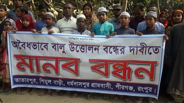 রংপুরের পীরগঞ্জ উপজেলার বড় আলমপুর ইউনিয়নের করতোয়া নদীতে অবৈধভাবে বালু উত্তোলন বন্ধের দাবিতে মানববন্ধন করেছে এলাকাসীরা।