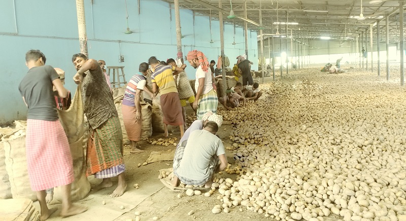 শরিফ কোল্ড স্টোরের ম্যানেজার আলমগীর হোসেন বলেন, এ বছর হিমাগারে এক লাখ ৪৭ হাজার মজুত রাখা হয়েছিল। বাজারে আলুর দাম কম থাকায় কৃষক ও আলু ব্যবসায়ীরা হিমাগার থেকে আলু বের করছে না। অনেক আলু ব্যবসায়ী ও কৃষক আমাদের কাছ থেকে আলুর ওপরে ঋণ নিয়েছিল। বাজারে দাম না থাকায় আমদের কাছে মজুত রাখা আলুর দলিল সারেন্ডার করছেন। সারেন্ডার করা দলিলের ৫০ কেজি বস্তার আলু আমরা ১৫০ থেকে ১৮০ টাকা দরে বিক্রি করছি। এখনো আমার হিমাগারে পাঁচ হাজার বস্তা আলু মজুত রয়েছে। এতে মোটা অংকের টাকা লোকসান হবে হিমাগার মালিকের।