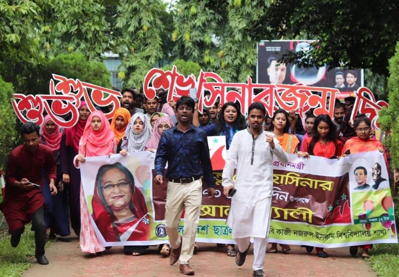 জাতীয় কবি কাজী নজরুল ইসলাম বিশ্ববিদ্যালয়ে শাখা ছাত্রলীগের উদ্যোগে প্রধানমন্ত্রী শেখ হাসিনার ৭৩তম জন্মদিনের শুভেচ্ছা জানিয়ে আনন্দ র্যালী ও সমাবেশ অনুষ্ঠিত হয়েছে।