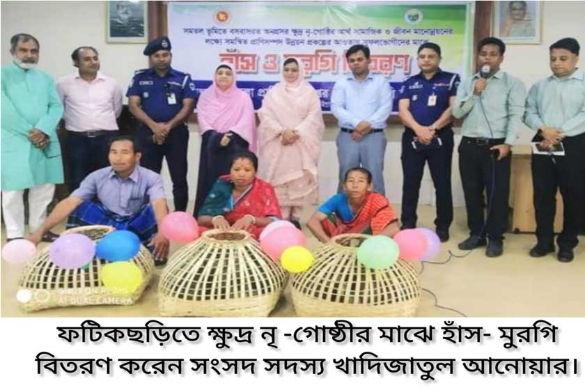 চট্টগ্রামের ফটিকছড়ি উপজেলায় সমতল ভূমিতে বসবাসরত অনগ্রসর ক্ষুদ্র নৃ -গোষ্ঠীর আর্থিক, সামাজিক ও জীবনমান উন্নয়নের লক্ষ্যে সমন্বিত প্রাণিসম্পদ উন্নয়ন প্রকল্পের আওতায় সুফল ভোগীদের মাঝে বিনামূল্যে হাঁস- মুরগি বিতরণ করা হয়েছে।