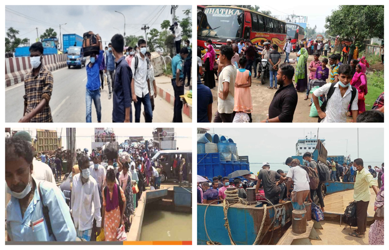 মহামারী করোনাভাইরাসের বিস্তার ঠেকাতে চলমান লকডাউনের মধ্যেও ঈদে বাড়ি গেছেন লাখো মানুষ। ঈদ আনন্দ উপভোগ শেষে শেষে রাজধানী ঢাকাসহ আশপাশের জেলার কর্মস্থলে ফিরছেন মানুষ। গণপরিবহন বন্ধ থাকায় মোটরসাইকেল, পিকআপ ভ্যান, পণ্যবাহী ট্রাক, সিএনজিচালিত অটোরিকশাসহ বিভিন্ন যানবাহনে ভেঙে ভেঙে রাজধানীতে ফিরছেন তারা। এতে খরচ পড়ছে কয়েকগুণ। কড়া রোদে ভোগান্তির মাত্রাও বেড়েছে অনেক।