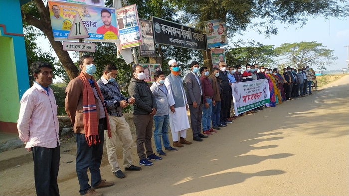 আজ মঙ্গলবার বিকালে কলমাকান্দা সরকারি কলেজ এর শিক্ষক কর্মচারীরা ওই প্রতিষ্ঠানের সামনে সড়কে এ মানববন্ধন কর্মসূচি আয়োজন করে।