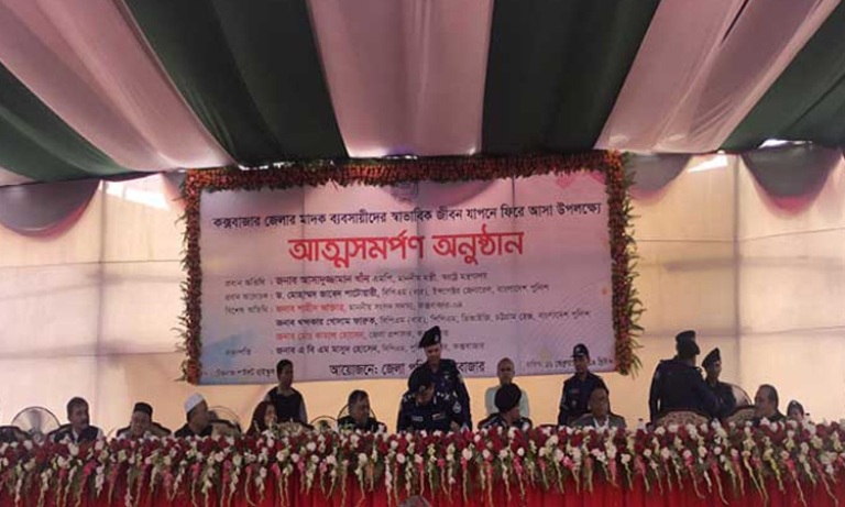 কক্সবাজারের টেকনাফে এক অনুষ্ঠানে আজ ১০২ ইয়াবা ব্যবসায়ী স্বরাষ্ট্রমন্ত্রীর কাছে আত্মসমর্পণ করেছেন।