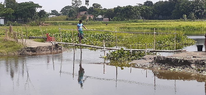 মুন্সীগঞ্জ সিরাজদিখান উপজেলার অসংখ্য ঘরবাড়ি, রাস্তাঘাট বন্যার পানির স্রোতে লন্ডভন্ড হয়ে গেছে ইতোমধ্যে। এছাড়া দীর্ঘস্থায়ী বন্যায় ফসলের ব্যাপক ক্ষতি হওয়ায় চরম ভোগান্তিতে পড়েছে এখানকার বন্যা দুর্গত এলাকার মানুষ।উপজেলার বালুচর ইউনিয়নের পূর্ব চান্দের চর উত্তর হাঁটি গ্রামে প্রায় ৪ শত ভোটার বসবাস করে।মূল এলাকার সঙ্গে যোগাযোগের জন্য তাদের একমাত্র ভরসা ছিলো এই একটি মাত্র কাঁচা মাটির রাস্তা ।