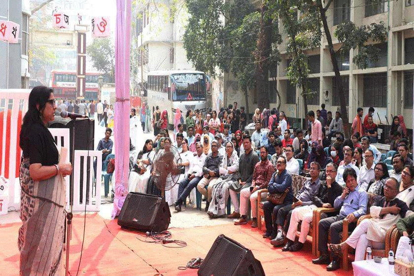 বিশ্বের মানচিত্রে ভাষাকে উপজীব্য করে একমাত্র স্বাধীন দেশ হিসেবে বাংলাদেশকে উল্লেখ করে আলোচনা সভায় সভাপতির বক্তব্যে বিশ্ববিদ্যালয়ের উপাচার্য অধ্যাপক ড. সাদেকা হালিম বলেন, “শুধুমাত্র ভাষার মাসেই ভাষা সৈনিকদের স্মরণ করলে হবে না, তাদের আত্মত্যাগের কারণ অনুধাবন করতে হবে। জাতির পিতা বঙ্গবন্ধুকে যে নির্মমভাবে হত্যা করা হয়েছিল তার অনেকগুলো কারণের মধ্যে অন্যতম হচ্ছে- তিনি ধর্মনিরপেক্ষ, অসাম্প্রদায়িক বাংলাদেশ গড়তে চেয়েছিলেন। তারই ধারাবাহিকতায় বঙ্গবন্ধুর সুযোগ্য কন্যা শেখ হাসিনাও একই পথে চলছেন; কিন্তু সে পথটাও অনেক কণ্টকাকীর্ণ। কেননা আমরা এখনও বিভিন্ন ষড়যন্ত্র দেখতে পাই। তাঁর জীবনের ওপর একুশ বারের মতো হামলা করা হয়।”