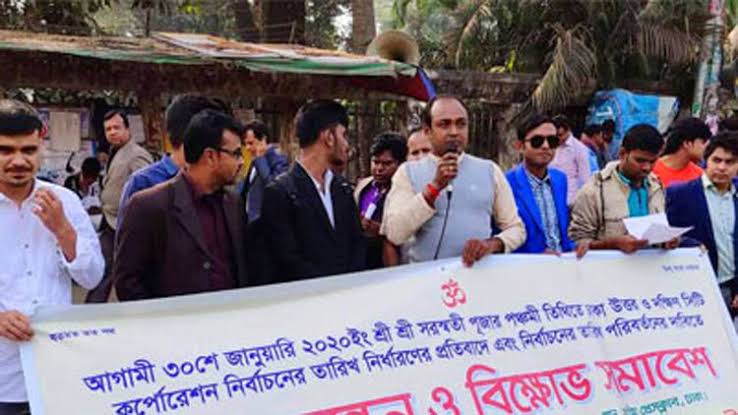 ঢাকার দুই সিটি করপোরেশন নির্বাচন আগামী ৩০ জানুয়ারির পরিবর্তে অন্য যেকোনো দিন নির্ধারণ না করলে ভোট বর্জন করবে বলে জানিয়েছে বাংলাদেশ জাতীয় হিন্দু ছাত্র মহাজোট। গতকাল শুক্রবার জাতীয় প্রেস ক্লাবের সামনে এক মানববন্ধনে তারা এ কথা জানান।
