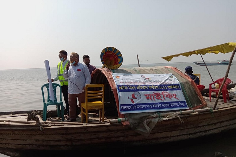 হাইমচর উপজেলা টাস্কফোর্সের উদ্যোগে প্রচারণা অভিযানে উপজেলা সিনিয়র মৎস্য কর্মকর্তা মো. মিজানুর রহমান, কোস্টগার্ড হাইমচর ইউনিটের সিনিয়র পেটি অফিসার মো. লুৎফুর রহমান, নৌ পুলিশ চরভৈরবী ফাঁড়ি ইনচার্জ আবদুল জলিল, কোস্টগার্ড ও নৌ পুলিশের সদস্যরা অংশ নেয়। পরে উপজেলা টাস্কফোর্সের কর্মকর্তারা কাটাখালি মৎস্য আড়ৎ, হাইমচর মৎস্য আড়ৎ ও চরভৈরবী মৎস্য আড়ৎ এলাকায় মৎস্য ব্যবসায়ী ও জেলেদের উদ্দেশ্যে সচেতনতামূলক বক্তব্য রাখেন এবং লিফলেট বিতরণ করেন।